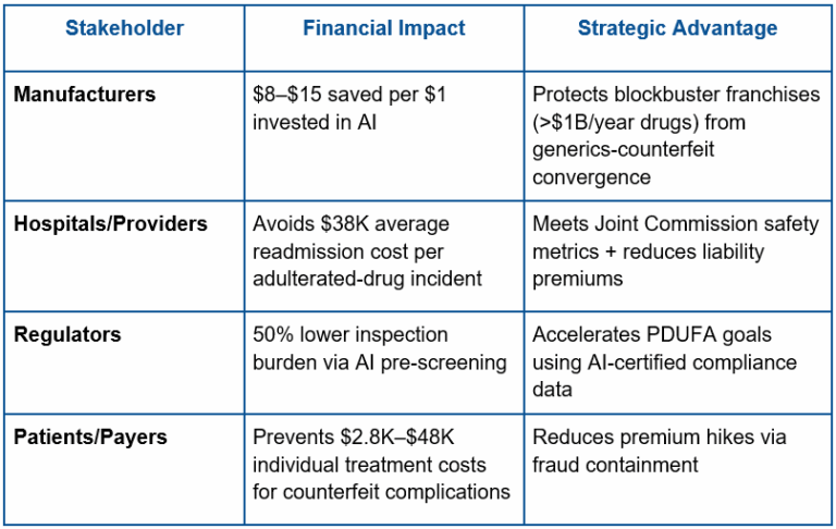 Key takeaway: The cost of upfront is trivial compared with the savings from a single recall avoided ($10M — $500M+ per incident). - Operational Costs: Lower by 15–30% than legacy QC labour pools via automated batch screening.
