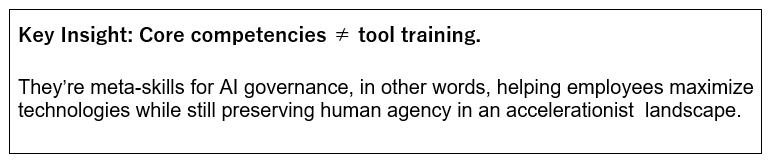 The democratization of generative AI will require a foundation skill set that spans departments—a universal “augmentation literacy” that turns each employee from a passive tool user into an active co-creator. This literacy is built upon three non-negotiable pillars: prompt engineering agility, responsible augmentation judgment and ethical co-creation fluency.
